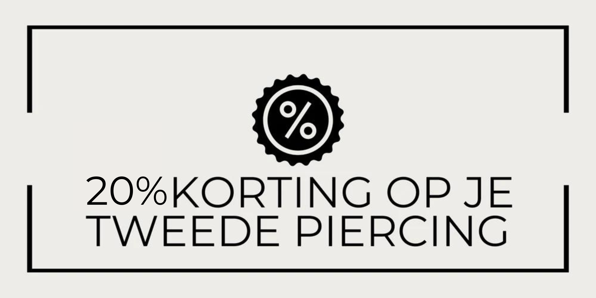• Voeg twee piercings toe aan je winkelwagen en er zal automatisch 20% korting worden toegepast op het tweede artikel.